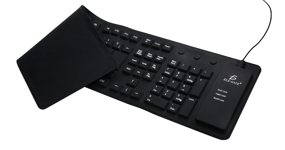 Teclado anti-derrames, resistente a polvo y agua. Lo puedes doblar para transportarlo sin sufrir daños.
